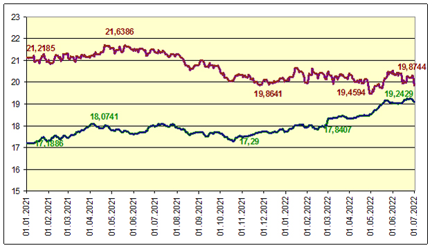Вот и выходит, что по отношению к доллару США молдавский лей девальвировался на 7,66% (с 17,7452 до 19,1945). А по отношению к евро, наоборот, укрепился – на 1,09% (с 20,0938 до 19,8744). Это является отражением того, что на мировых рынках евро ослаб по отношению к доллару США и в июне даже какое-то время стоил дешевле американской валюты. Данная ситуация достаточно серьезно влияет и на молдавскую экономику.
